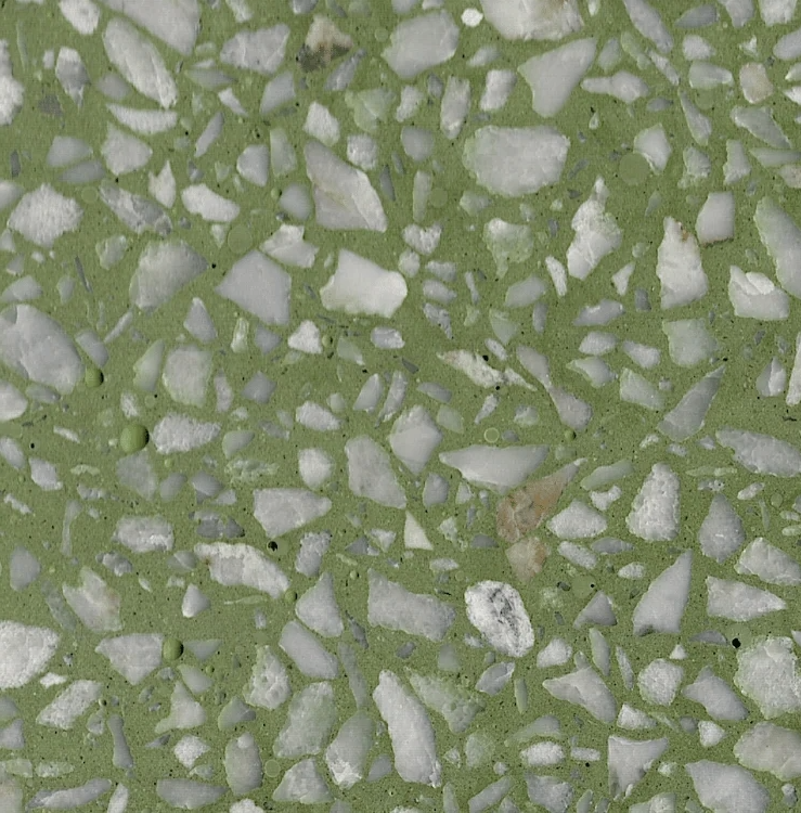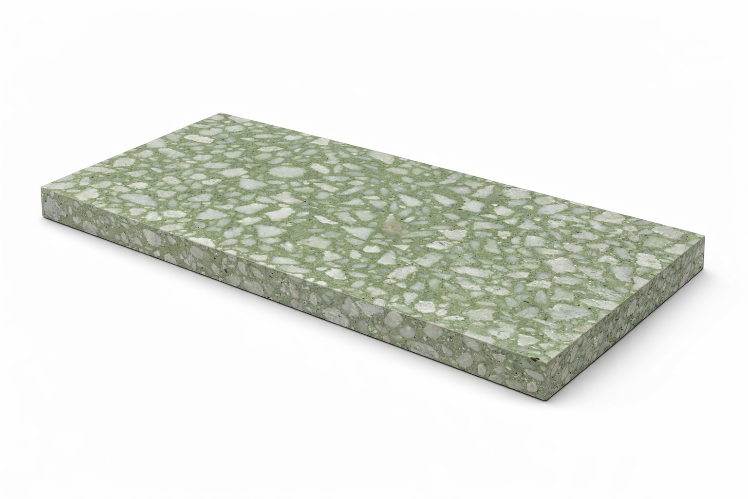 Moss Green is a vibrant terrazzo paver distinguished by its rich green cement base and a blend of white and light grey stone aggregates. The lively green tone evokes natural vegetation and landscape elements, while the contrasting fragments add texture and visual depth to the surface.